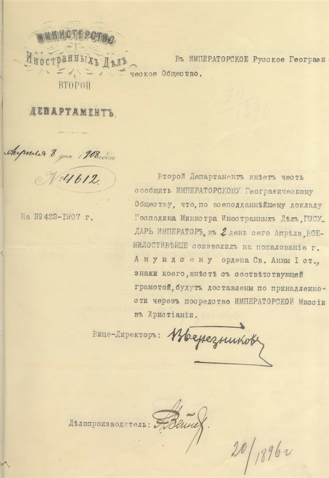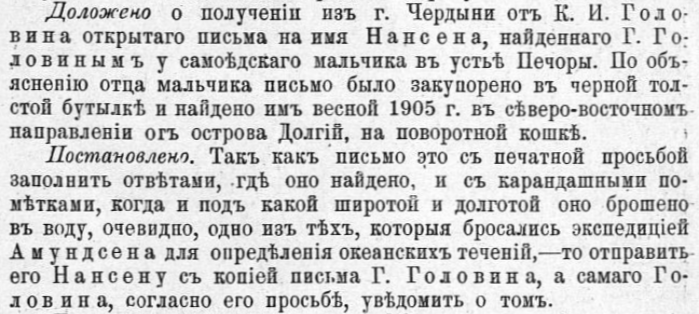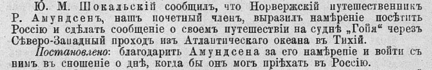 21 апреля в Академии наук состоялось торжественное заседание в честь участников экспедиции под председательством академика Александра Карпинского и с участием президента Русского географического общества Юлия Шокальского.