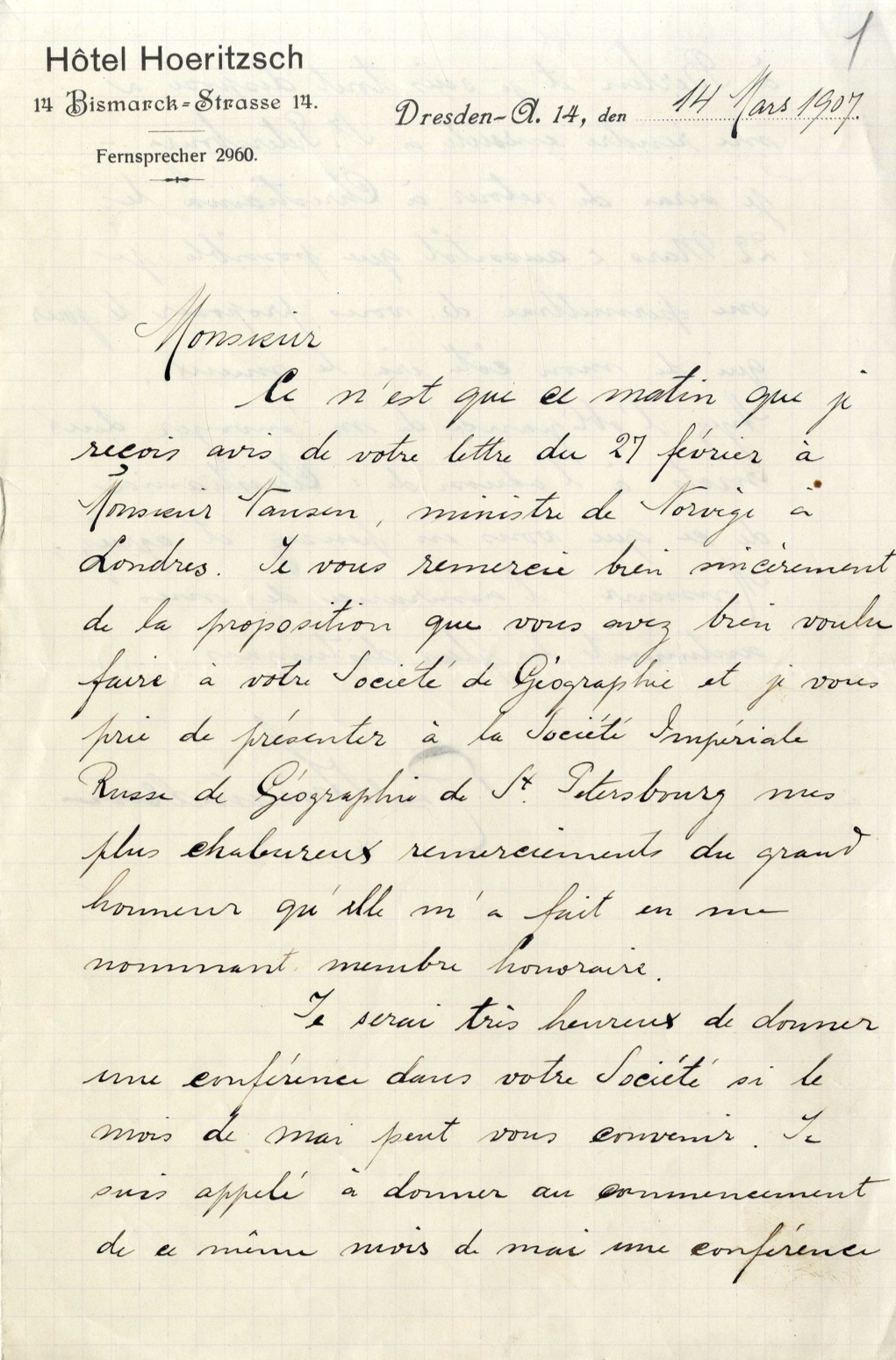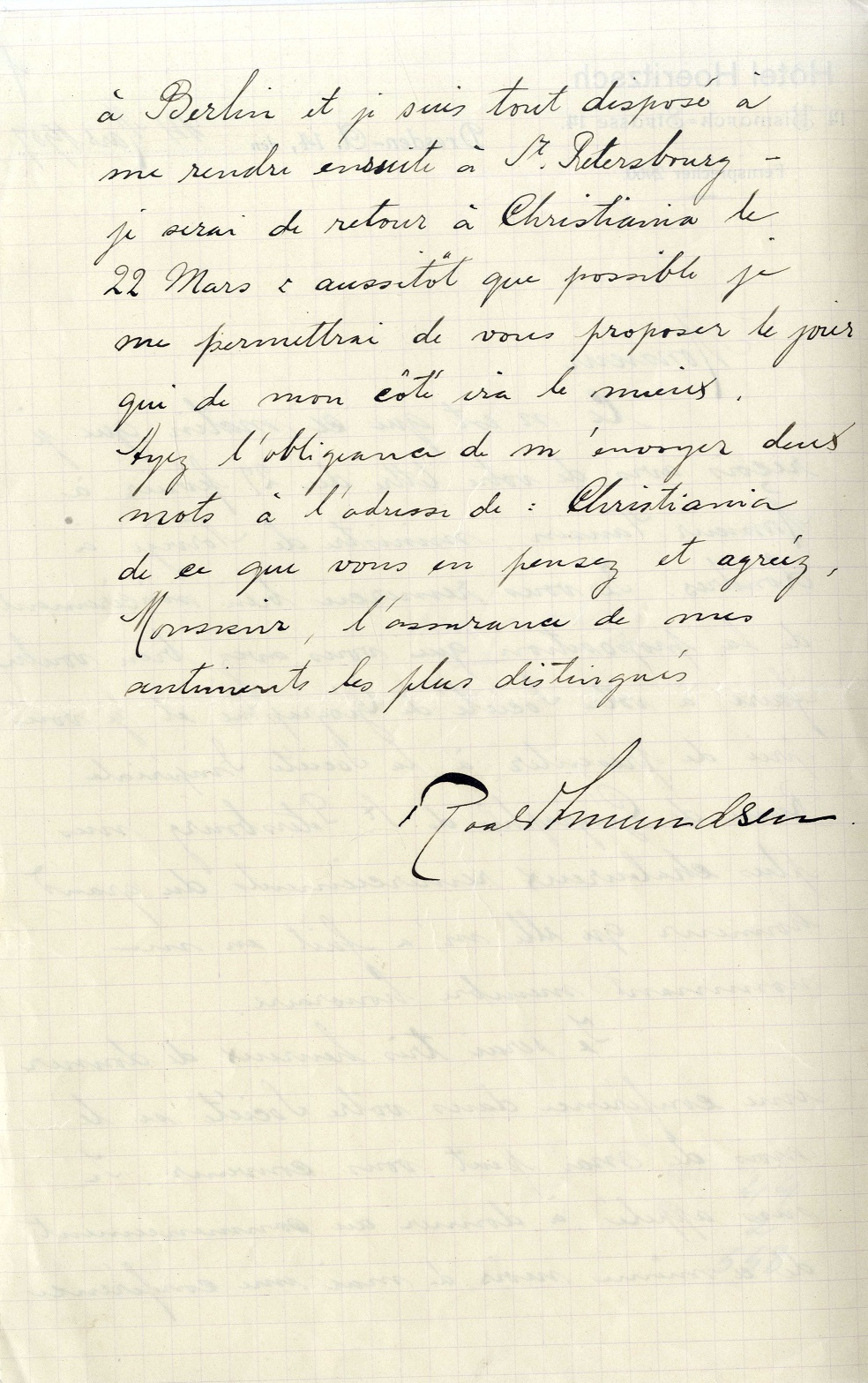 «Триста тридцать километров, которые отделяют Валгу от Гатчины, мы прошли при попутном ветре со средней скоростью 117 километров в час. Этот стремительный бег над Русской равниной, такой огромной и пустынной, покрытой лесами и снегами и столь торжественной в лучах заходящего солнца, как и прибытие в Гатчину, остались для меня одним из самых прекрасных воспоминаний нашего путешествия. Прошло уже довольно много времени после захода солнца, когда мы подошли к причальной мачте. Белизна снега ещё освещала поле. На его фоне рельефно выделялись фигуры русских солдат в низко натянутых будёновках и длинных шинелях».
