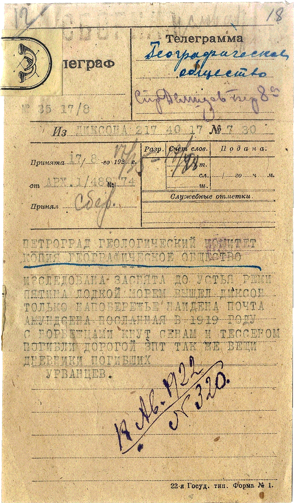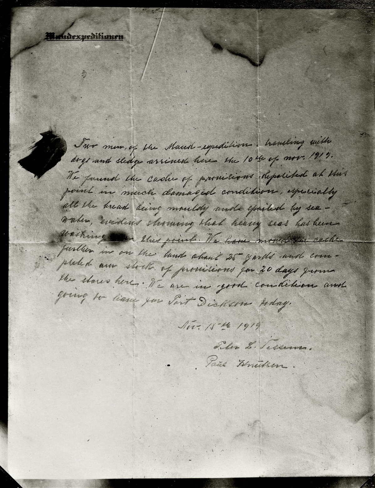 По прибытию в Сализи метеоролог экспедиции, участник плавания на «Мод» Финн Мальмгрен вместе с Геннадием Олонкиным отправились в Главную геофизическую обсерваторию, чтобы договориться с русскими метеорологами о передаче синоптических сводок на борт «Норвегии».